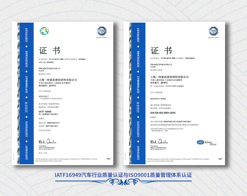 SealTex has been committed to the production and sales of 100% asbestos-free environmental sealing gaskets and high-temp thermal insulation products,  participate in a number of National Standards establishment, engineering support to the customers such as FUJI test and FEA,. SealTex has passed ISO9001, IATF16949, ISO14001, ISO45001 and obtained local GC special equipment manufacturing licence.
