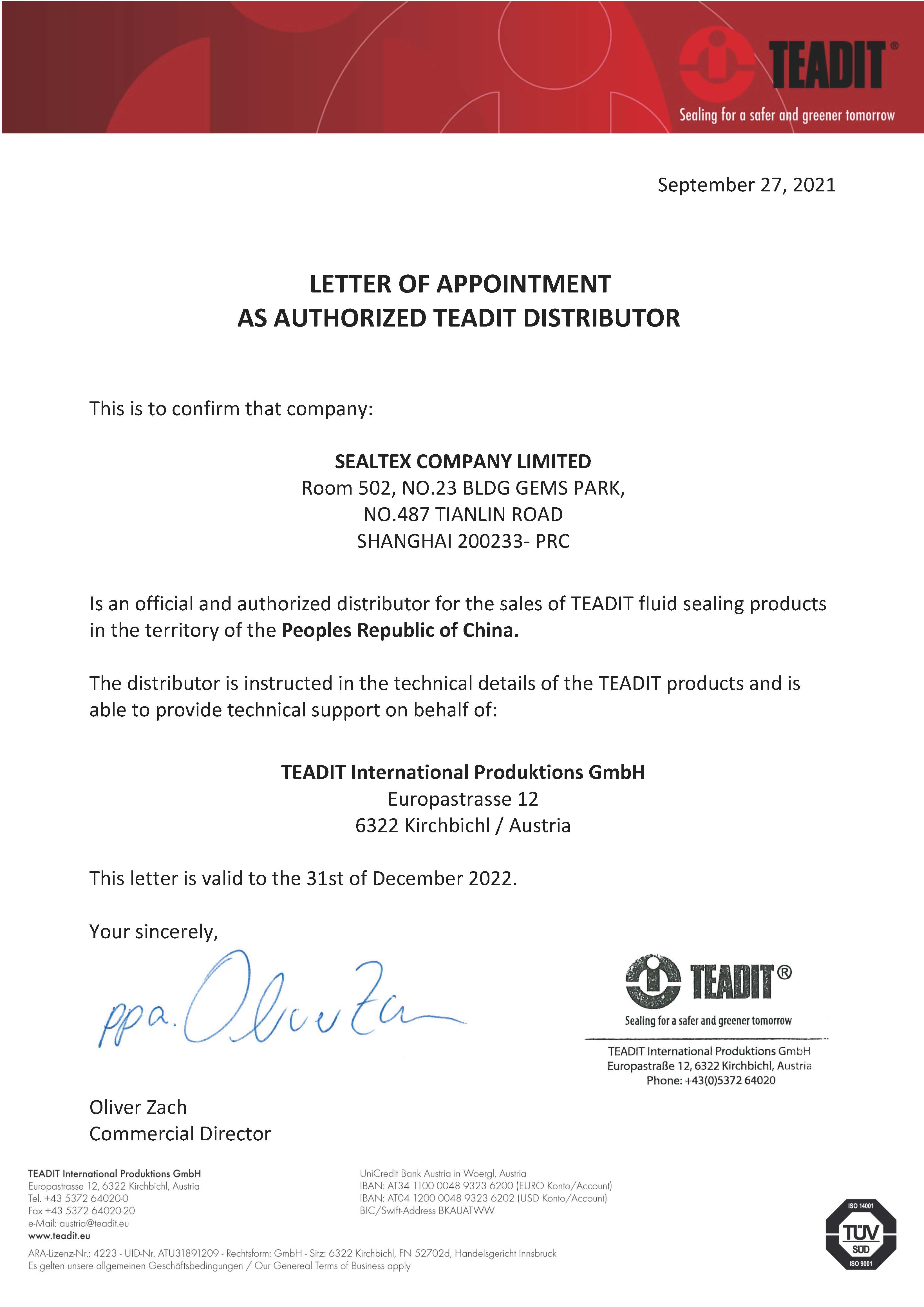TEADIT®不斷投資于研發,以跟上行業需求的發展。上海索拓密封材料有限公司與TEADIT泰迪集團有良好的合作關系。可供應各種TEADIT四氟板,盤根,無石棉板等。