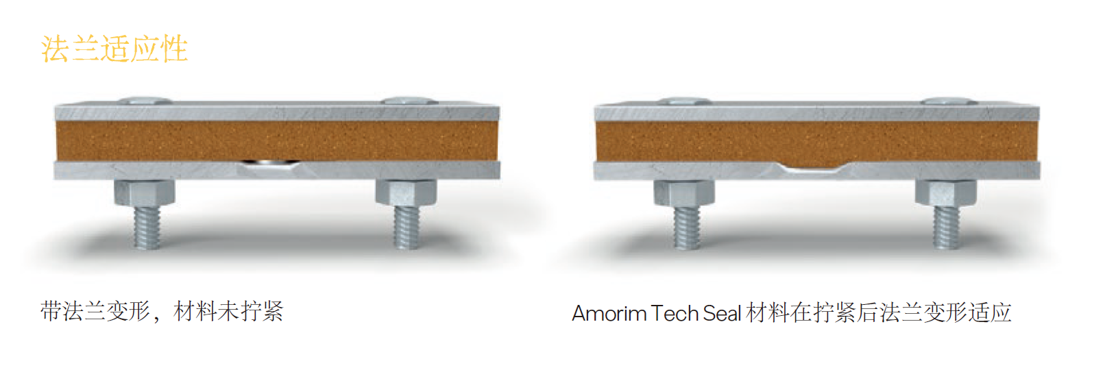 可承受極端的表面光潔度條件和較高的失平面度范圍。即使法蘭表面有瑕疵,大面積的接觸區域和足夠的壓縮力也能確保極佳的適配性。