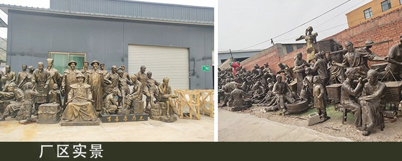人物的形象是非常豐富的,銅人物雕塑也受到很多雕刻藝術家的喜愛,比較常見的銅人物雕塑形象有古代名人、近現代名人、當代名人、武士、將軍等,這些人物有著不同的形態,不同的社會地位,人物形象寫實、生動,使用范圍廣泛。